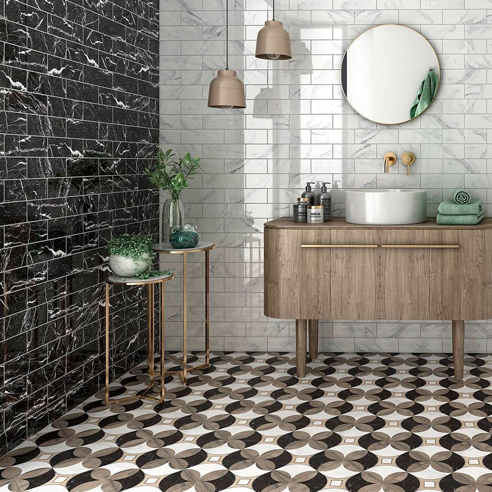 Kakel Marquina Svart 8x23 cm från serie Marquina. Marquina(KLM7756) Kakel 8x23 cm kan endast användas till vägg. Karaktären för Marquina är svart yta med en rund kant samt med marmor textur. Det…: